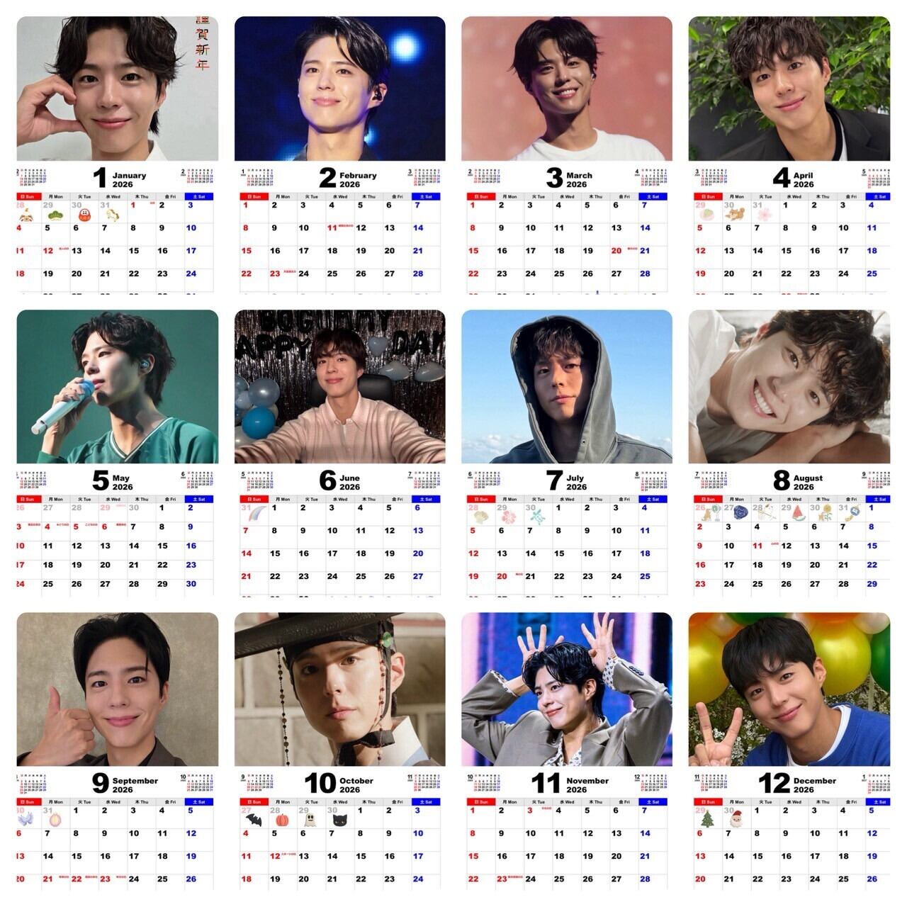 パクボゴム 2026 フォトフレーム 卓上 カレンダー 韓流 グッズ fx001-0