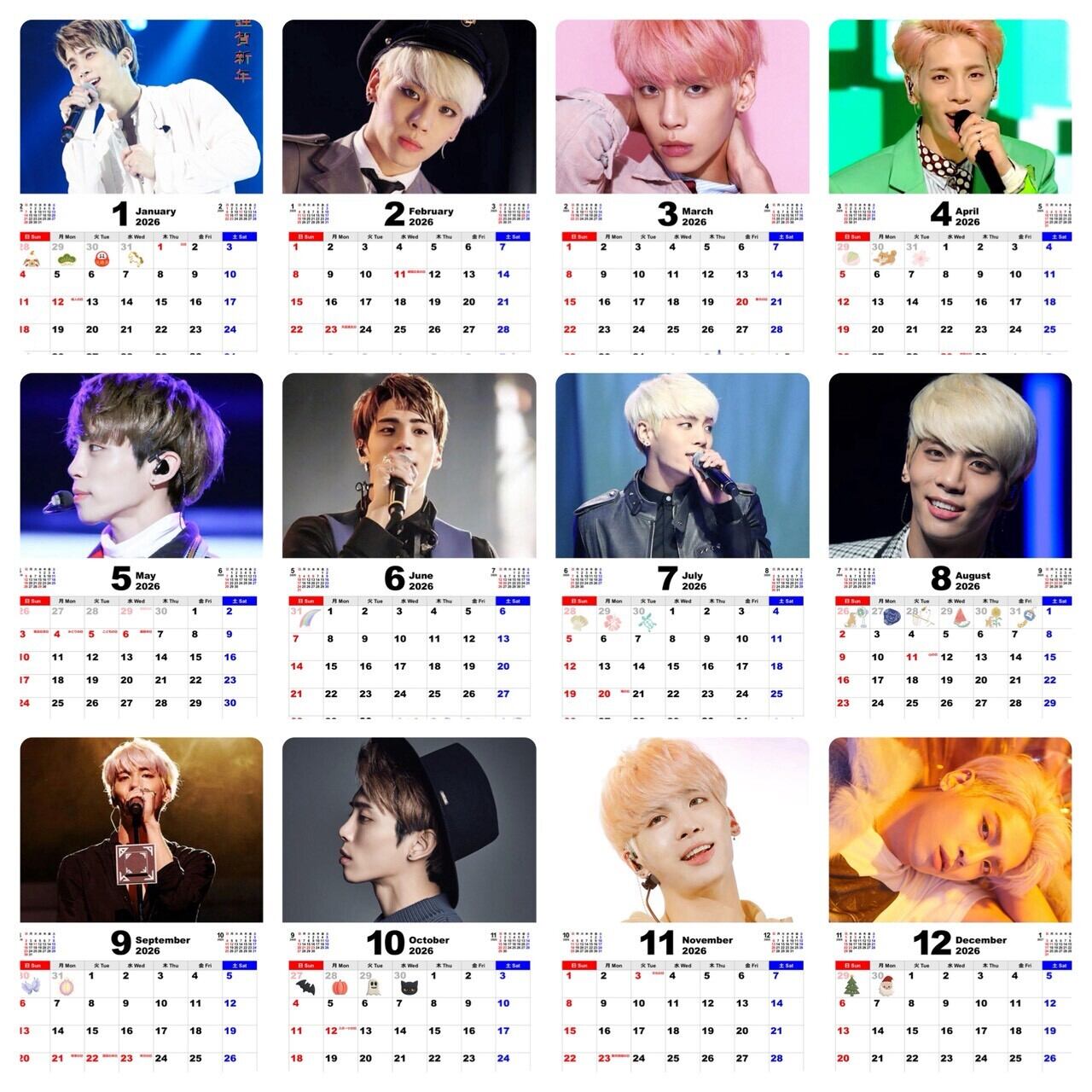 ジョンヒョン SHINee シャイニー 2026 フォトフレーム付き 卓上 カレンダー 韓流 グッズ fx102-0