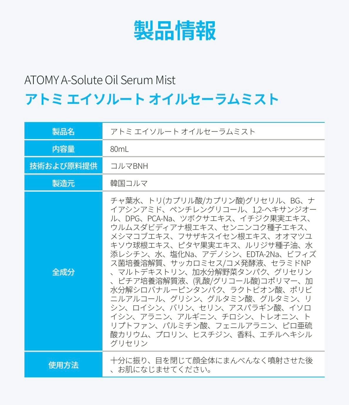 国内発送 アトミ エイソルート オイルセーラムミスト ATOMY アトミ化粧品 保湿ケア 美容液 80ml マスクシートおまけ付き 韓国コスメ za017
