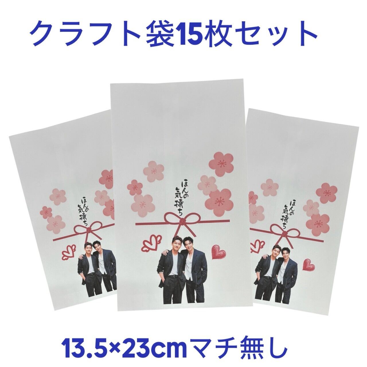 可愛らしいデザインのクラフト紙袋15枚セットです。ファンミーティングやイベントでのプレゼント交換、お菓子やギフトの包装に最適です。クラフト紙を使用し、使いやすい仕様となっています。韓流グッズのコレクションやファングッズとしても喜ばれ、大切な方へのプレゼントを素敵に演出できます。