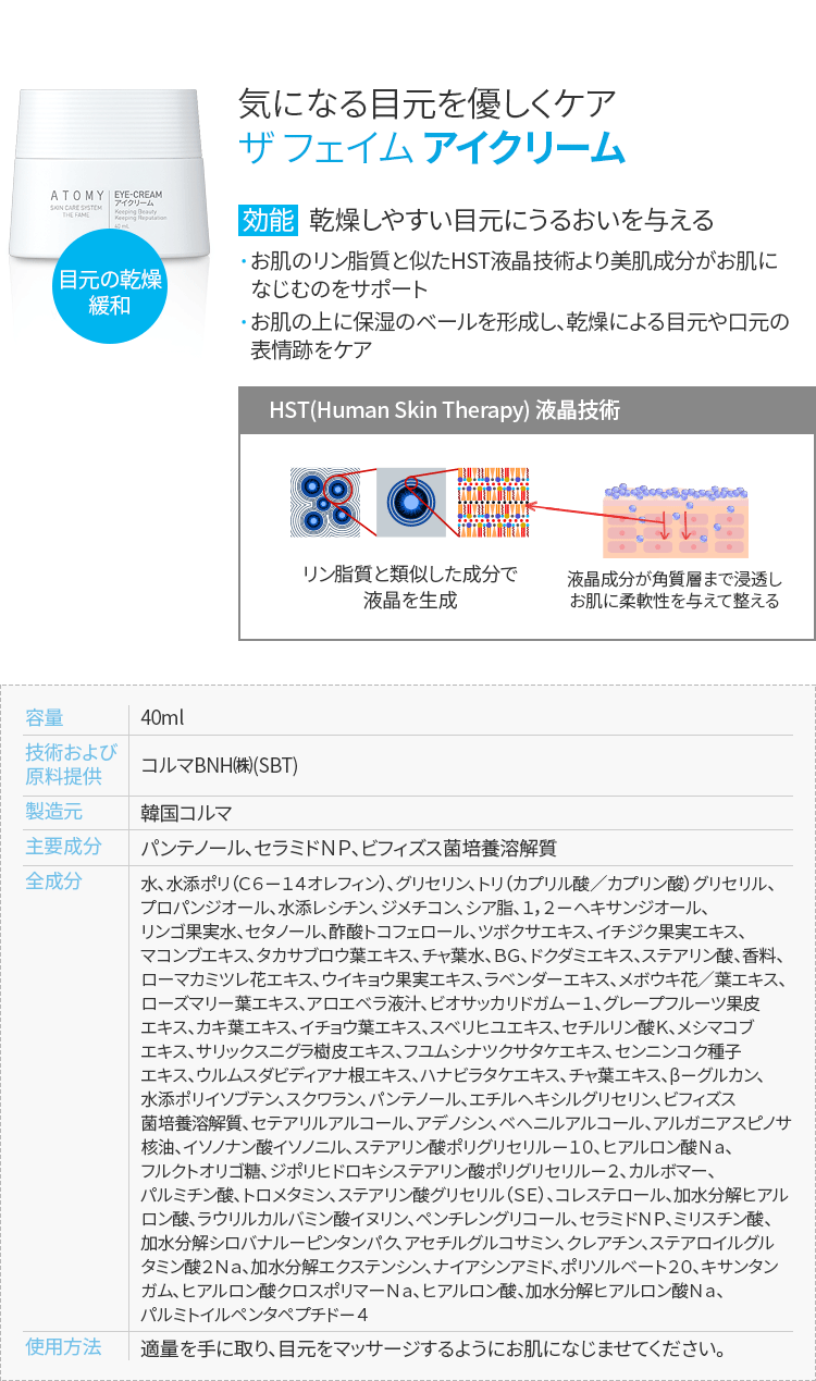 国内発送 2点セット アトミザフェイム ATOMY アイクリーム 40ml マスクシートおまけ付き アトミ化粧品 韓国コスメ zb003-1