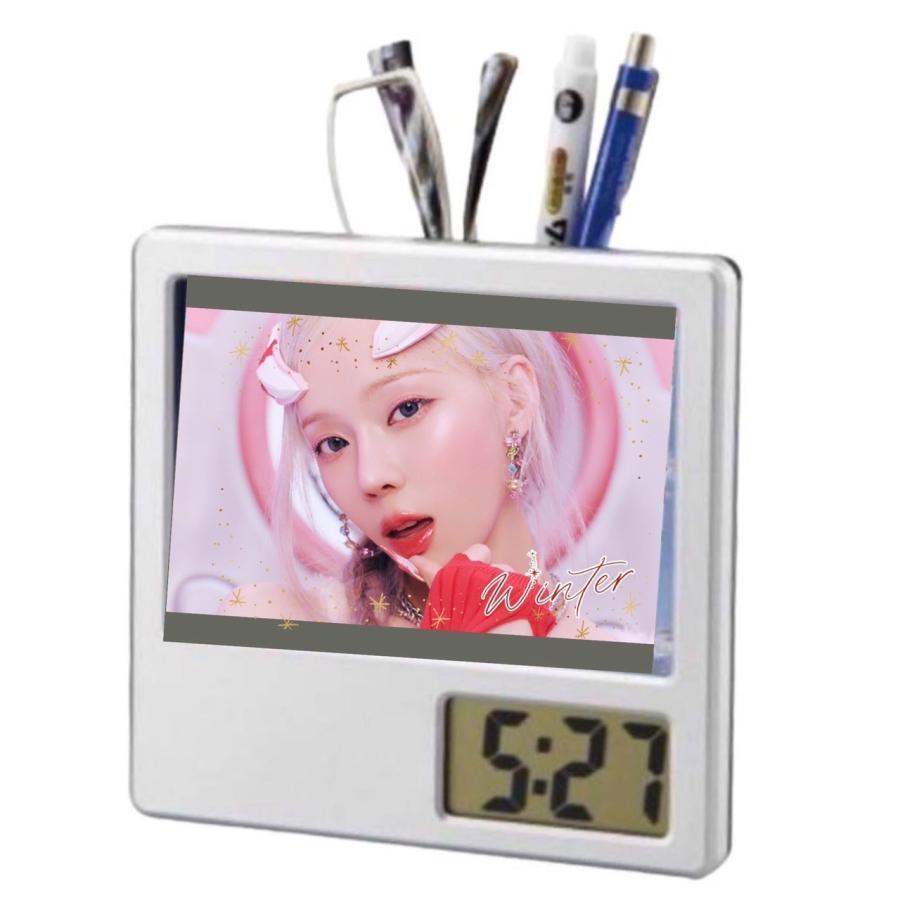 ウィンター aespa エスパ 写真入り ペン立て付き 置き時計 時計 フォトフレーム 韓流 グッズ ph059-25